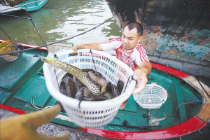 他告诉记者,南海不仅中上层渔业资源丰富,而且名贵、高档的海产品也十分丰富,尤其是在南沙群岛的礁盘内,龙虾、苏眉、石斑鱼、青衣、公螺等,数不胜数,每次出海,都有不小的收获。自古以来,南沙丰富的海产吸引着潭门渔民远离家门,出没风波里。