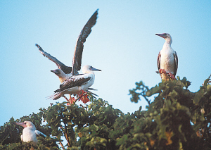 据了解,在1.7平方公里的东岛上,岛上热带林木繁茂,一年四季郁郁葱葱,数以十万计的海鸟出没其中,人们又将东岛美称为“鸟岛”。栖息在东岛比较常见的有褐鲣鸟、红脚鲣鸟、海鸥、金珩鸟、军舰鸟等,鲣鸟数量最多。