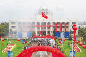 建立市委、市人大常委会、市政府、警备区等机构 罗保铭在讲话时强调,坚持维权维稳开发保护并举,拼搏实干,把三沙建设成独具特色和魅力的海岛城市 于迅出席 李宪生主持 本报西沙永兴岛7月24日11时电(海报集团全媒体中心特派记者黄晓华 李科洲 彭青林)历史将永远铭记这一刻———海南省三沙市成立大会暨揭牌仪式,今天上午在美丽的西沙永兴岛隆重举行。地处祖国最南端的这个地级市,正式建立了市委、市人大常委会、市政府、警备区等机构。 省委书记、省人大常委会主任罗保铭,省政协主席于迅出席揭牌仪式。省委副书记李宪生主持仪式。 民政部副部长孙绍骋,农业部副部长牛盾,交通运输部总规划师戴东昌,国家海洋局副局长王宏,以及公安部边防局、中宣部新闻局负责人等国家部委领导出席仪式。 解放军总参谋部作战部副部长阚立奎,解放军总参谋部军务部副部长郭天琪,广州军区副司令员邢书成,南海舰队副司令员么志楼,南海舰队副政委、南航部队政委刘明利等部队领导出席。 上午10时32分,三沙市成立大会暨揭牌仪式开始。中华人民共和国国旗缓缓升起,全场高唱中华人民共和国国歌。 罗保铭在讲话中指出,党中央、国务院审时度势,果断决策,设立地级三沙市。海南省委、省政府坚决贯彻中央的方针政策和部署要求,三沙市和三沙警备区成立挂牌,就是要依法履行对西沙群岛、中沙群岛、南沙群岛的岛礁及其海域行政管理和开发保护的神圣职责,努力把三沙市建设成为维护南海主权和南海资源开发服务的重要基地。 罗保铭说,建设三沙市任务艰巨、责任重大,我们要坚持统一筹划和规划,分期重点实施,加快军民融合式建设发展,扎实做好三沙市建市的各项工作,当前要重点加强政权建设,确保三沙市的行政管理有序高效。要加快推进基础设施建设,抓紧编制三沙市中长期建设总体规划、海洋环境保护等重要规划,扶持发展渔业、旅游业、油气资源开发等特色产业。 罗保铭强调,三沙的开发建设离不开党中央、国务院、中央军委和各部委的有力指导和鼎力支持,特别是资金、项目、政策等方面的倾斜支持。要整合各方资源,建立顺畅的协调协作机制;要制定相关法规,为维护南海主权,为三沙经济社会发展提供强有力的法治保障。要坚持走军民兼顾、融合发展之路,大力开展双拥共建工作,军民、军地携手合力保卫和建设美丽的三沙。 罗保铭表示,要在党中央、国务院正确有力的领导下,全省上下团结一致,依法履职,坚持维权、维稳、开发、保护并举,拼搏实干,努力把祖国最南端的三沙市建设成为独具特色、独具魅力的海岛城市。 孙绍骋宣读了国务院关于同意海南省设立地级三沙市的批复。邢书成宣读了中央军委关于同意组建中国人民解放军海南省三沙警备区的批复。 三沙市委书记、市长肖杰在讲话时表示,三沙市人民政府将坚定不移地高举中国特色社会主义伟大旗帜,以邓小平理论和“三个代表”重要思想为指导,深入贯彻落实科学发展观,在海南省委、省政府的正确领导下,坚决、全面贯彻中央的战略意图,立足实际、开拓创新、求真务实,努力开创三沙市更加美好的明天。 10时56分,礼炮鸣响。罗保铭、于迅、李宪生、邢书成等领导分别为三沙市委、市人大常委会、市政府、警备区揭牌。 参加仪式的省领导还有姜斯宪、肖若海、许俊、陈辞、马勇霞、谭力、李秀领、谭本宏、孙新阳、毕志强、林方略、陈成、符跃兰、李国梁、董治良。 参加仪式的部队领导还有省军区政委刘新、榆林基地司令员郭玉军、武警海南总队总队长张明义。 来自海南省各市县、省直有关部门及驻琼有关单位负责人,三沙市人大代表,驻永兴岛部队官兵代表和三沙市各界代表参加了揭牌仪式。 今年6月,国务院批准撤销海南省西沙群岛、南沙群岛、中沙群岛办事处,设立地级三沙市,管辖西沙群岛、中沙群岛、南沙群岛的岛礁及其海域。三沙市人民政府驻西沙永兴岛。 |