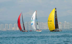 | 三亚号(右)与彪马号(左)在三亚湾上进行练习赛。 |