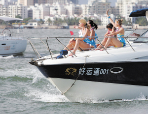 | 参加国际比基尼小姐总决赛的各国佳丽在大海上,感受豪华游艇的独特魅力。 |
