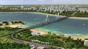今年一个特大喜讯传到文昌:连接海口文昌两市的跨海大桥———铺前大桥今年4月已获国家发改委批准建设。该大桥全长5.7公里,其中跨海大桥长约3.8公里,项目估算总投资约为14.6亿元。