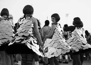 7月23日晚,伦敦奥运会主体育场“伦敦碗”迎来首次彩排,据悉将有6.5万人参加。图为演员在彩排前等候入场。 新华社发