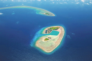 | 西沙群岛航行条件最好的港口琛航岛。植被茂密的琛航岛,镶嵌在耳廓状的环礁上。“耳廓”西侧有一入口,犹如耳道,那是环礁上的口门,也是绝佳的航道:船只可以顺着口门驶入,进入潟湖,在那里靠岸登陆。清末一艘名为“琛航号”的军舰曾到此寻访,“琛航岛”因此得名。兰建琼 摄 |