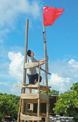 | 晋卿岛上,渔民升起五星红旗。 李英挺 摄 |