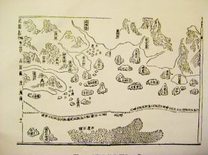 | 明《郑和航海图》(局部)绘出“石星石塘”、“石塘”、“万生石塘屿”等。陈超翻拍 |