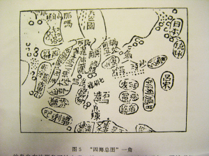 | 清《四海总图》(局部)已经明确标绘南海四大群岛的地名和位置。 陈超翻拍 |