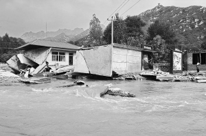这是涞源县张家坟村被洪水冲毁的民房(7月24日摄)。