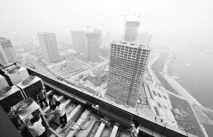 滨海新区中心商务区建设中的楼宇矗立在海河南岸。