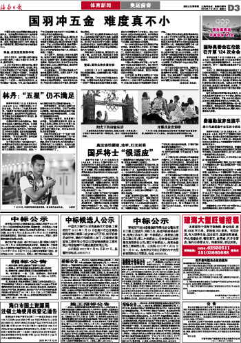 | 海南日报 体育新闻奥运前奏 026 2012-07-251 2012年07月25日 星期三 |