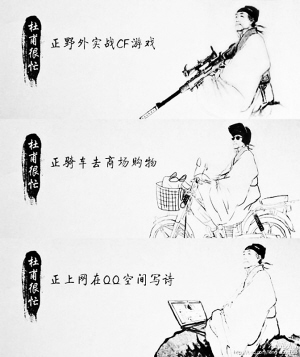 近日,一组“正反体”组图在网络上走红,诸葛亮、黄盖、孙权、李白等历史名人纷纷被涂鸦恶搞,大有追随“杜甫很忙”之势。