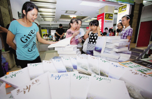 7月25日,在海南省凤凰新华出版发行公司海口购书中心,读者在翻阅《三沙文丛》图书。当天,《三沙文丛》在全省新华书店上架销售,这是为了庆祝三沙市挂牌成立送来的一份文化贺礼。 张茂 摄