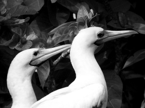 | 雌雄红脚鲣鸟。 曹垒 李长寿 摄 |