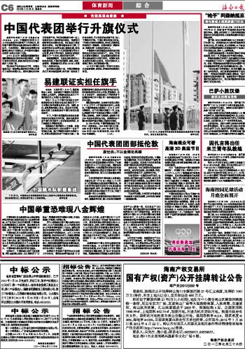 海南日报 体育新闻综合 022 2012-07-261 2012年07月26日 星期四