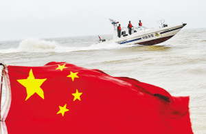 8月1日,担负着北戴河暑期海上安全保卫任务的河北海警支队官兵坚守岗位,冒雨在海上巡逻,在海上度过八一建军节。 新华社发