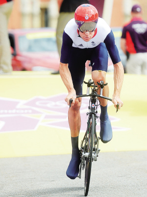 | 北京时间8月2日,在伦敦奥运会男子公路自行车个人计时赛决赛中,维金斯以50分39秒54的成绩夺冠。图为维金斯在比赛中。 新华社发 |