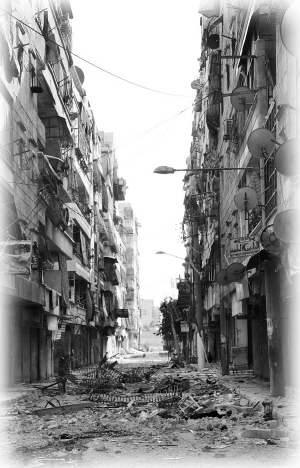 | 阿勒颇市建筑被毁。 新华社/法新 |