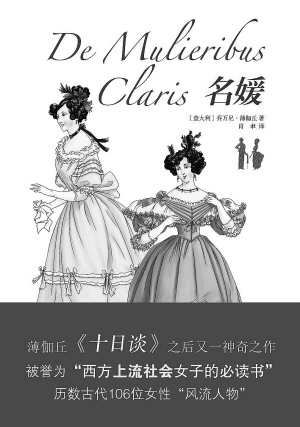 《名媛》(译林出版社 2012年7月)是西方女子传记文学的开山扛鼎之作,此书的影响遍及英国、法国、德国、西班牙,甚至亚洲、非洲各国。许多大文豪均从书中获取素材。自出版以来,一直备受文坛特别是女性读者的关注。它是薄伽丘1361年夏天到1362年夏天在故乡契塔尔特完成的。薄伽丘说,启发他写此书的是被他奉为尊师的大诗人彼特拉克(Petrarch,1304-1374)的《名男子传》。薄伽丘采用了“著名”一字的宽泛含义,“将因任何行为而闻名世界的女子均称为(西方)名媛”,所以此书并非单纯歌功颂德之作。薄伽丘在书中收入不少以恶德闻名的女人传略,他认为:“赞美可嘉壮举,间或强烈谴责罪恶,这不仅能激励高尚者去追求荣誉,而且会在一定程度上约束恶人的为非作歹。”阅读此书,我们不但会诚心叹服作者洞悉世情、勘破人性的能力,而且会掩卷深思他在书中发表的议论,它们饱含睿智,褒贬分明,讴歌美德,鞭挞罪恶。