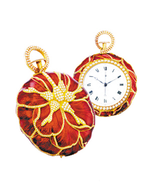 其次,要选择贵金属表壳,或镶有珠宝、彩绘以及珐琅等的中古表,一般来说,材质越稀有,其价值就越高,在各式中古表中,表壳材质最为珍贵的是铂金,依次为18K金、14K金、9K金、银、包金、包银、钢等类别。而K金中又以红色金最为珍贵。