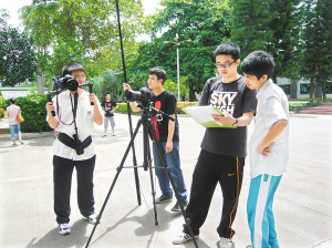 为了挤出时间拍戏,大家都牺牲了许多学习、聚会游玩的时间。“有一次晚上拍戏,由于那块场地是学校老人们的饭后乘凉之地,为了不打扰他们,我们只好等到十一点才开始拍,那一晚拍到了十二点大家才回去。”曾子捷说。
