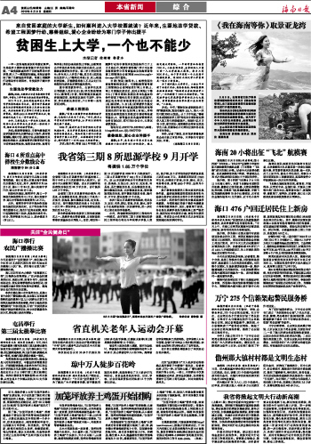 海南日报 本省新闻综合 004 2012-08-091 2012年08月09日 星期四