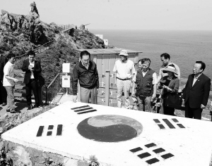 10日下午,韩国总统府高层宣布了李明博登上独岛的消息,称“当地时间10日下午韩国总统李明博先访问了郁陵岛,然后登上了独岛”。这是韩国总统第一次踏上独岛,此前在韩日围绕独岛争议激烈的2008年,韩国国务总理韩升洙曾访问独岛宣示主权。