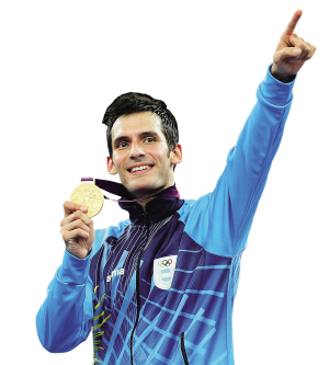 8月10日,伦敦奥运会跆拳道项目决出两个项目的金牌,男子80公斤级的冠军被阿根廷“黑马”克里斯马尼奇获得,这是阿根廷在本届奥运会上获得的第一块金牌。 图为阿根廷选手克里斯马尼奇在颁奖仪式上庆祝。 新华社发