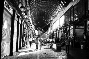 一对情侣穿行在门可罗雀的哈梅迪亚市场。 新华社记者 覃海石 摄