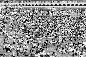 8月12日,游客在青岛第一海水浴场戏水纳凉。8月份以来,青岛全面进入旅游旺季,青岛国际啤酒节的开幕更让游客接待量达到一年中的最高峰,各景区人满为患。 新华社发