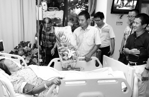 | 8月13日下午,9名网友到海口市人民医院看望“海口雷锋”的母亲。