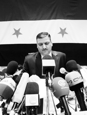 | 8月14日,叙利亚前总理里亚德·法里德·希贾卜在安曼举行新闻发布会。