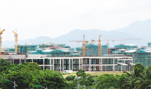 8月13日,位于万宁市礼纪镇的奥特莱斯项目正如火如荼建设中,总建筑面积达10.3万平方米的品牌折扣店主体工程本月将实现全部封顶。 据了解,奥特莱斯项目总占地约1500亩,总建筑面积约65万平方米,计划总投资40亿元,至今累计完成投资7.4亿元。 该项目民俗风情街、酒吧街、酒店等将于2014-2015年陆续建成开业。 本报记者 张杰 摄