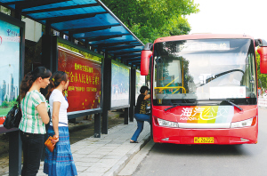| 儋州市那大镇人民中路新修建的公交车站台。该市今年上半年整顿取缔了非法营运的机动三轮车,在那大城区统一建设150个公交站台,改变了城区公交营运环境和秩序。 本报记者 苏晓杰 摄