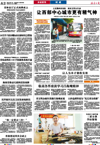 海南日报 本省新闻时政 002 2012-08-161 2012年08月16日 星期四