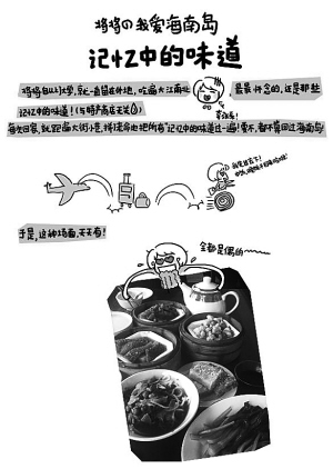 今年初,她借着回家的机会,用好奇的眼光打量这些,发现好玩的东西就拍照。回去后挑选出合适的,配上漫画解说,看起来活泼又有趣。作品完成后,将将把它传到百度空间和新浪微博上,成功勾起了许多身在异乡的海南人的思乡情,也让一些外地人想去实地看看。