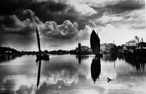 海口辟为对外通商口岸后,因为有了各国在海口设立的领事馆,曾经繁华一时,商贾云集。作为对外交流的主要港口,新埠岛曾经船桅如林。然而,到了1939年,日军入侵海南,占领海口的日军在这里实行商业统治政策,导致大量商店关门,商业极其萧条,人们纷纷逃离这个城市,海口变得沉寂。高木勇次的画作,真实地记录了当年的一幕。