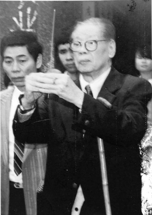 1989年秋天,阔别40年之后,82岁的王庶华回到故乡———永兴镇。一时间,乡亲们齐齐汇集到了纯雅村,都想要一睹他的风采。王庶华的族人还保留着这样一张彩色照片,相中人穿着深蓝色的西装,戴着老花镜,左腕挂着拐杖,站在老屋门前,双手举起一枝香,向前方虔诚致敬。