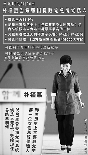 图为朴槿惠当选韩国执政党总统候选人