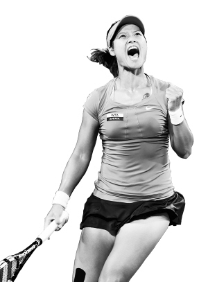 | 李娜获胜后庆祝。