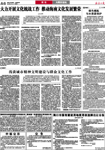 大力开展文化统战工作 推动海南文化发展繁荣