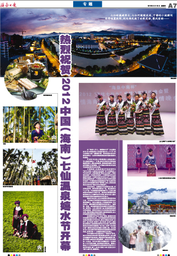 七仙岭巍峨耸立、七仙河缓缓流淌,宁静的小城瞬间变得喧嚣热闹,到处都充满了欢歌笑语,黎风苗韵 以“相约七月七,浪漫嬉水节”为主题的2012年中国(海南)七仙温泉嬉水节,于8月23日在保亭七仙广场隆重开幕,保亭再次为岛内外游客呈现出一场具有浓郁黎族苗族风情的旅游文化盛宴。 自2000年以来,中国(海南)七仙温泉嬉水节已经成功举办了13届,嬉水节系列文化活动规模越来越大,层次越来越高,影响越来越深,知名度和影响力不断提高,已日渐成为国内外知名的节庆活动项目和文化品牌。 中国海南七仙温泉嬉水节先后被评为“2010中国十大著名节庆品牌” 和“中国最具人气民间节会”。并接连获得“国家卫生县城”、“国家园林县城”、“全国文明县城”、“中国最佳文化生态旅游目的地”、“中国民间文化艺术之乡”、“中国最佳绿色旅游名县”、“中国最具民俗文化特色旅游目的地”、“中国最美休闲旅游城市”和“全国休闲农业与乡村旅游示范县”等荣誉,此外,保亭还被国台办批准为“琼台文化交流基地”。 与往年相比,本届嬉水节内容更加丰富,形式更加多样,参与范围也更加广泛。重点是结合“七夕”这一代表爱情的浪漫传统节日,以突出黎苗族文化特色作为着力点,通过充分彰显保亭黎族苗族文化,打造特色文化品牌,进而向世人展示保亭独具民俗和地域特色的文化魅力。 继去年在北京人民大会堂举办新闻发布会之后,今年嬉水节新闻发布会选择在北京钓鱼台国宾馆举行。来自全国政协、中宣部新闻局、中央外宣办、国家奥委会等部委的相关负责人,唐国强、刘劲、林永健等演艺界的表演艺术家纷纷出席。新华社、人民日报社等100多家媒体到会参与采访报道,新闻发布会由中央电视台欧阳夏丹主持。很好地借助京城优势和主流媒体资源,加大对海南保亭旅游推介和促销力度。 备受瞩目的“寻找七仙女”活动,继前两年进军祖国宝岛台湾之后,今年继续采取和台湾东森电视台等媒体合作的方式。通过开展魅力神州-台湾行、魅力神州-海南行、魅力神州-北京行、颁奖晚会等活动,促进海峡两岸的文化交流,同时增强黎苗文化宣传及旅游推广的力度。本届“七仙形象小姐”颁奖仪式在北京国家大剧院上演,由五届35位七仙女携手保亭歌舞团及海南黎苗族民俗专家,共同打造了一场精彩的黎苗文化演出。 今年的嬉水节还首次迈出了“国际化”步伐。嬉水节活动内容包括中国(海南)世界华人龙王狮王争霸赛和“嬉水狂欢、风情保亭”国际摄影大展,参与范围已经定位为国际视野,这成为今年活动的一大亮点。其中龙王狮王争霸赛吸引了全球各地14支代表队参赛,这在我省还属首次。摄影大赛在三个月的征稿期间内共收到来自全国23个省市和香港、澳门、加拿大等地1420位影友共计16874幅作品,规模空前。 |