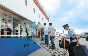 | 8月24日,文昌清澜港,旅客登上“琼沙3号”。 本报记者 李英挺 摄 |