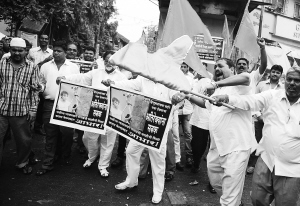 8月29日,在印度的孟买,一些印度教团体人士在得知印度最高法院维持对孟买恐怖袭击案主犯卡萨布的死刑判决后,挥舞旗帜进行庆祝。 印度最高法院29日宣布维持对2008年孟买恐怖袭击案的主犯之一卡萨布的死刑判决,驳回了他的上诉。2008年11月26日至29日,孟买发生连环恐怖袭击事件,造成至少195人死亡,近300人受伤。在这次袭击事件中,卡萨布是唯一在现场被抓的罪犯。 新华社/法新