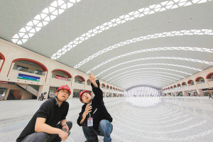 8月29日,我国高寒地区最大的客运综合交通枢纽———哈尔滨西客站正式落成。西客站是哈尔滨至大连铁路客运专线的起始站。车场按横列式一站两场布置,分为东西两个站前广场,投资总额70多亿元人民币。图为技术人员在做最后的检测。 新华社发