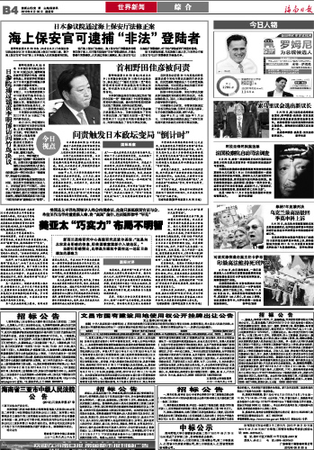 海南日报 世界新闻综合 012 2012-08-301 2012年08月30日 星期四