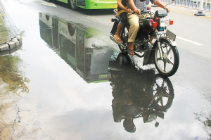 8月30日上午,三亚市解放路因为夜间的一场暴雨出现多处积水,给市民出行带来困难。 特约记者 孙清 摄