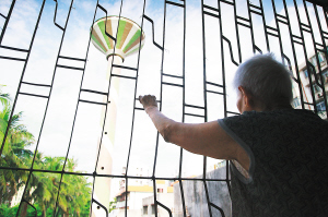 | 8月30日,在一家老年公寓里,一名老人站在阳台上向外张望。 海报集团全媒体中心记者 张茂 摄 |