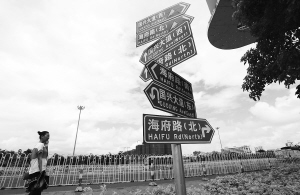海口市海府路与国兴大道的交叉路口处,有7块不同方向的路标牌“挤”在一根杆子上,行人难辨方向,被网友称为“最牛”路牌。对此,网友发帖呼吁路牌设置少些眼花缭乱,多些人性化。 海报集团全媒体中心记者 张茂 摄