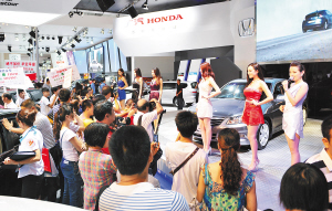 各款车旁倚立着的车模,或端庄或妩媚,成为车展上一道独有的风景。在此次车展上,不少由汽车厂家直接“空投”海南车展的“御用车模”纷纷登台展示,让前去光顾车展的市民大呼过瘾。