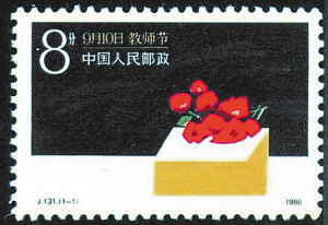 一个国家庆祝教师节的重要标志,就是发行国家名片———邮票。联合国曾于1964年发行了一套三枚反映教育的纪念邮票,画面的黑板上写着“教育是为了进步”,以突出教育的重要性。各国发行教师节或教师日的纪念邮票甚多,我国在解放前,就发行过教师节的邮票。这套“教师节”邮票发行于1947年8月27日,即国民政府确定的教师节那一天。这套邮票共4枚,第1枚图案是孔子像,采用广东画家关惠农的作品,第2枚图案为孔子在山东曲阜大成殿前讲学的杏坛,第3枚图案为曲阜孔林中的孔子墓,第4枚为孔府中的大成殿。